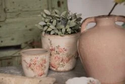 Clayre & Eef Bloempot Ø 11×10 Cm Roze Beige Keramiek Rond Bloemen Bloempot Binnen Plantenpot Plant Pot
