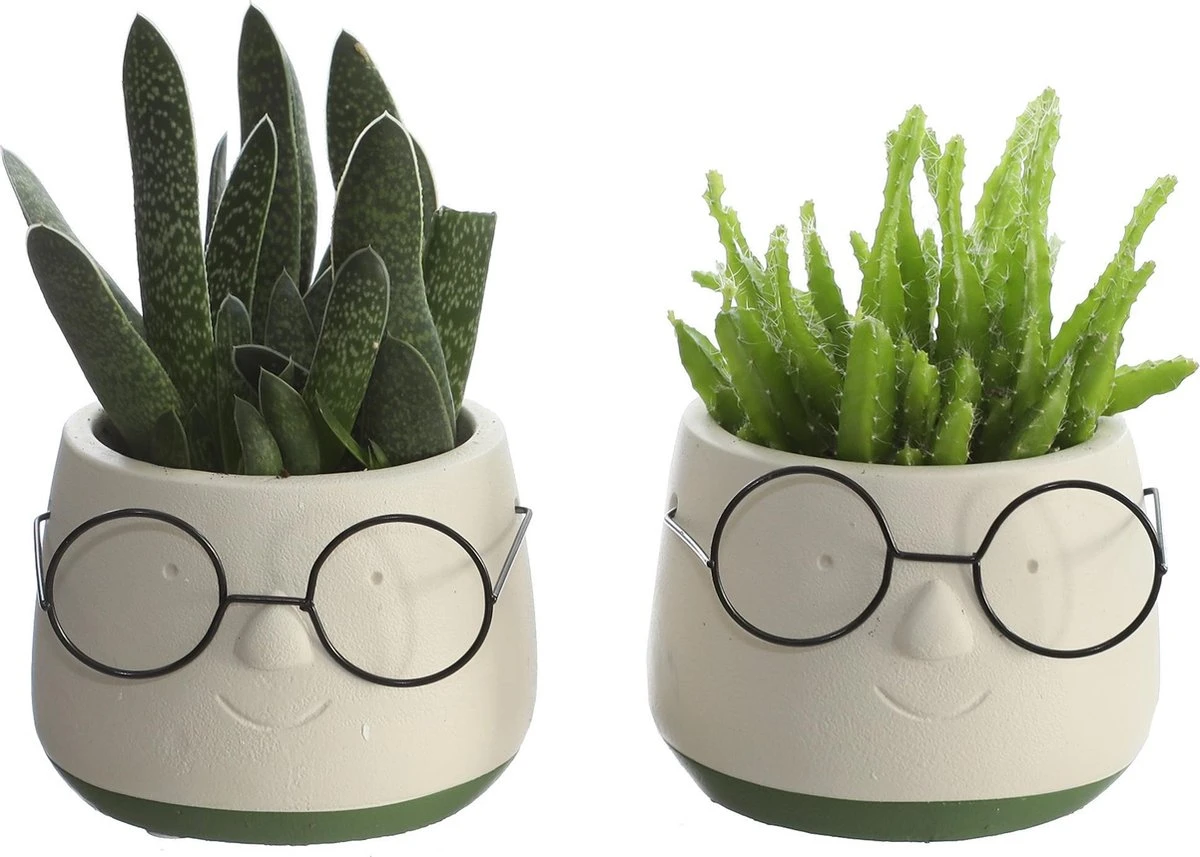 - Inhoud verpakking: 2 Bloempotten met metalen bril (zie hoofdfoto)