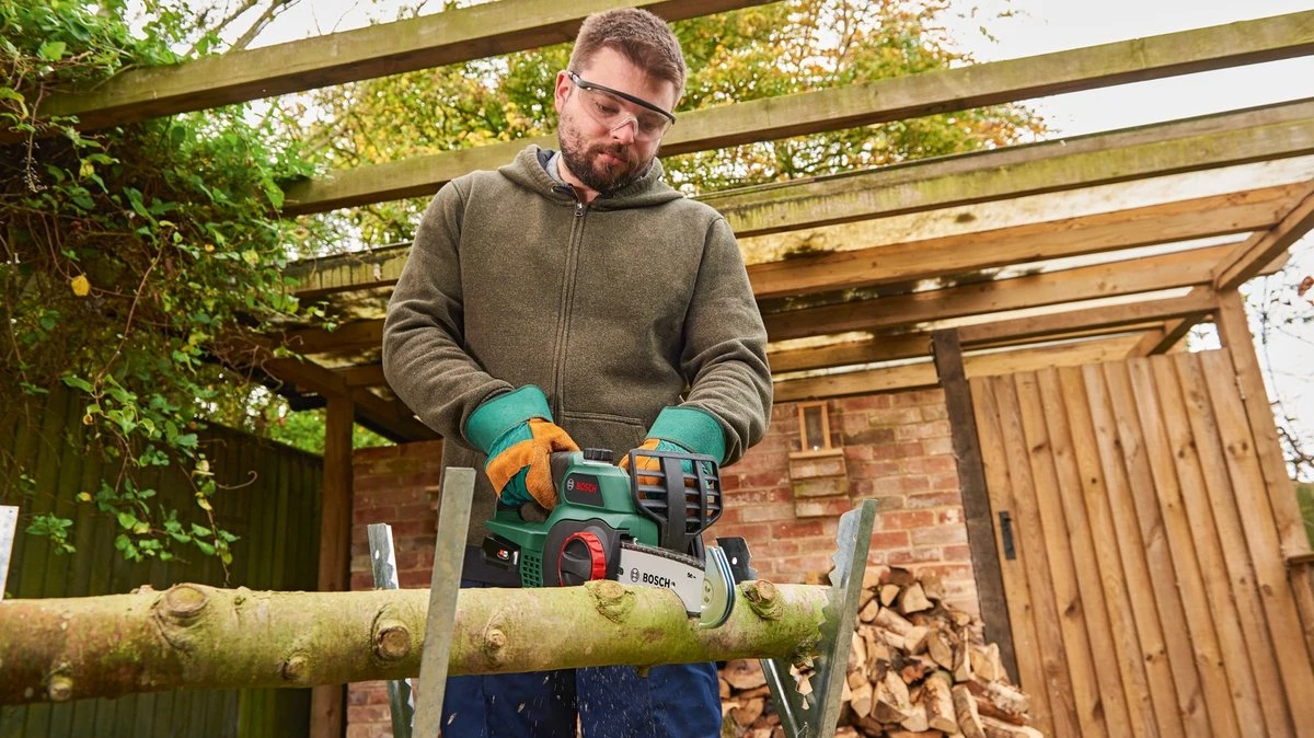 - Gestroomlijnd Bosch SDS-systeem maakt het mogelijk om zonder gereedschap de ketting te spannen en te wisselen
