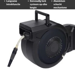 Ben je dol op tuinieren maar ben je het beu om met de waterslang te knoeien? De Buxibo Wandslangenbox verlost je van al dat geknoe. De tuinslang met haspel is dankzijn het zelfoprollende systeem een uitstekende oplossing voor iedereen die bezig is in de tuin. Met slechts een lichte ruk kan de slang oprollen in een de box. De wandslangenbox van Buxibo is 180 graden flexibel en draai alle kanten met je mee. Met een bereik van maar liefst 22 meter heb je zo alle plantjes voorzien van voldoende water. De spoeisysteem heeft 9 sproeistanden en bovendien krijg je nu ook een gratis sproeier erbij met 4 sproeistanden.