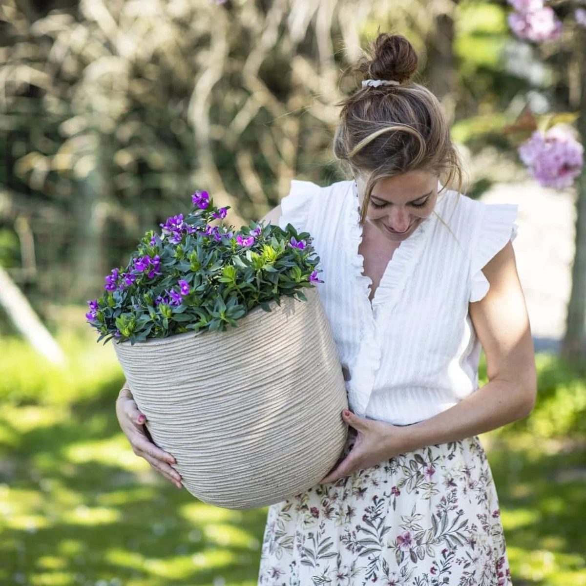 Capi Europe – Bloempot Bol Waste Rib NL – 43×41 – Terrazzo Beige – Voor Binnen En Buiten – KTBR933