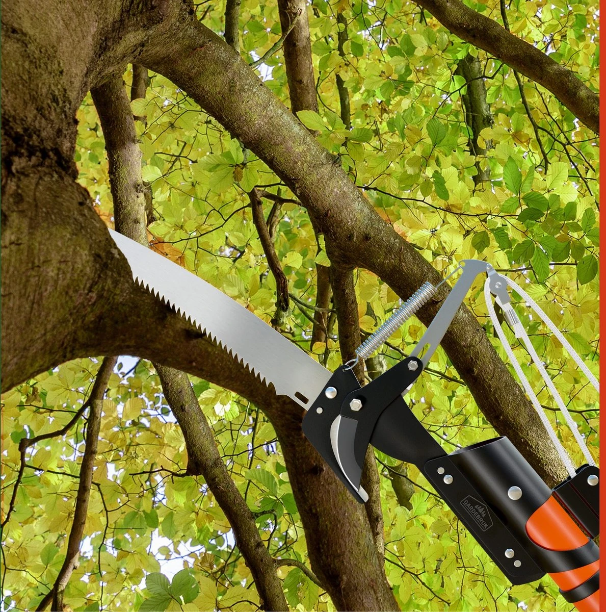 Maak jouw snoeiwerk gemakkelijker met de 2in1 telescopische snoeizaag en takkenschaar van Gardebruk.