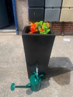 Deze moderne regenton is voorzien van een hoogwaardige messing kraan (3/4″ BSP), waardoor een gieter snel kan worden gevuld.