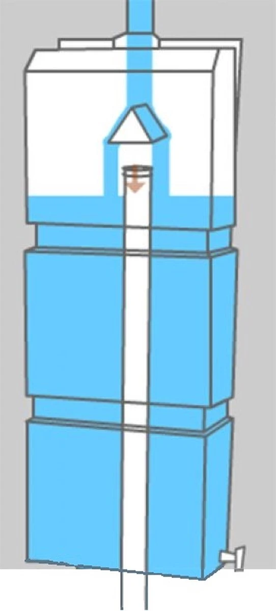 • Kan gebruikt worden als verdeelpunt om water naar andere grotere tanks te verdelen. Past op alle ronde of vierkante regenpijpen (tot 80 mm Ø)