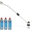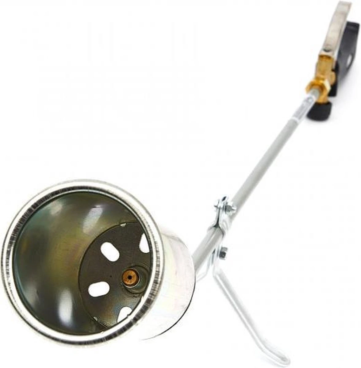 Deze branderset Romaxi Eco wordt geleverd met 5 meter propaangasslang met 2x G3/8 L aansluiting. Deze brander is zeer geschikt voor branden van bitumineuze dakbedekkingen maar ook voor onkruidbestrijding. De grote branderkop met een diameter van 57 mm kan je een groot oppervlak branden. De ergonomische veiligheidsgreep beschikt over een 3-weg klep en een waakvlam. Let op: Om gebruik te maken van deze onkruidbrander heb je een drukregelaar nodig Specificaties: